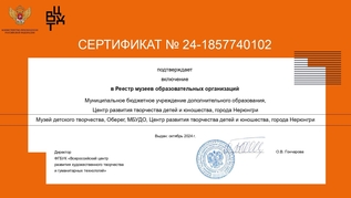 «Нерюнгри - 50» | Обзорная экскурсия по выставке творческих работ, обучающихся Нерюнгринского района «Мой любимый город». Просмотр видеофильма «Прогулки в прошлое»- история развития города. Мастер-класс по созданию сувенира. | 05.11.2025 15.11.2025 | Четверг Пятница | 11.00-11.45 12.00-12.45 15.00-15.45 16.00-16.45 |